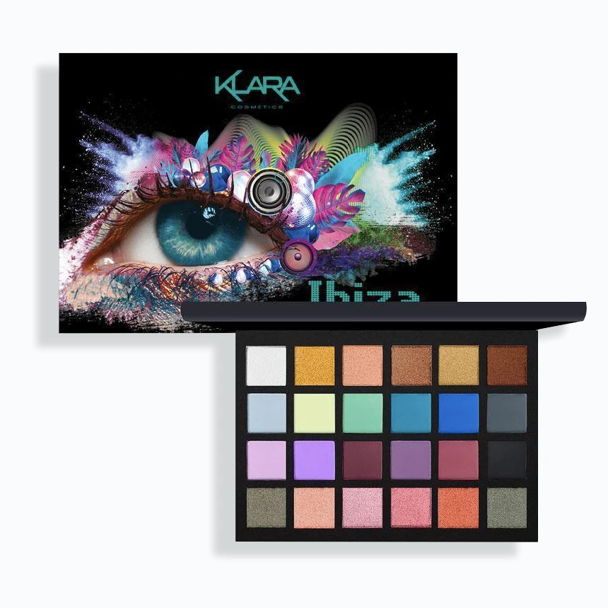 Each Klara Cosmetics 24 eyeshadow palette is a compilation of matte and high-shine shimmer shadows, featuring 24 shades of glamorous shimmers, bold mattes, and strong pastel tones.
