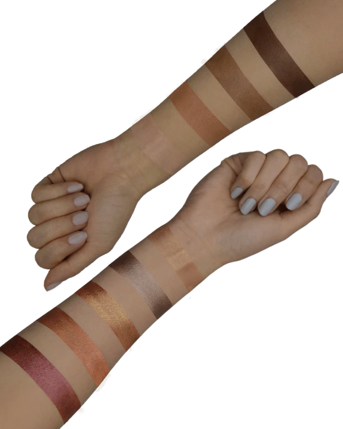 Featuring the lustrous shades of copper, gold, and neutral brown tones, this palette offers crease-free, intense saturated pigment from each stroke.