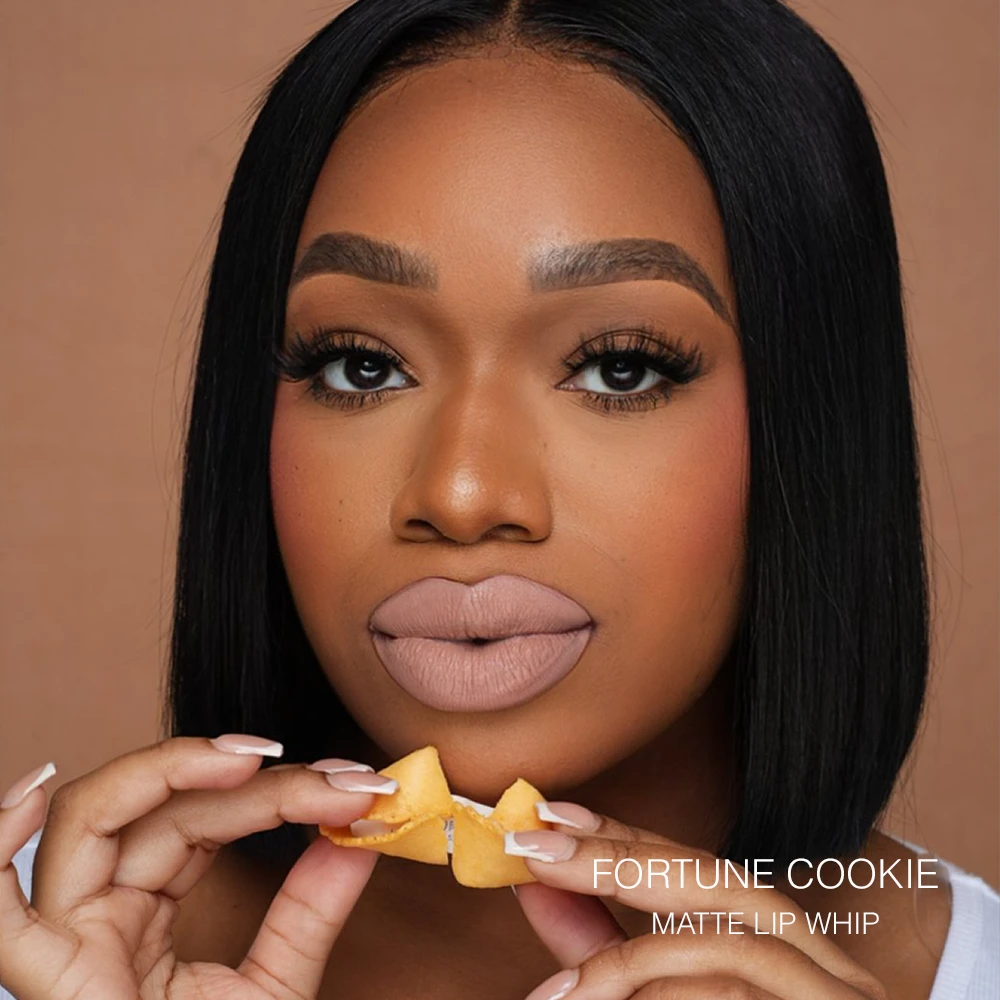 Fortune Cookie Lip Whip is an amazingneutral hue with hints of pink and brown… Like our best-selling Versailles mixed with Cake d’Ivoire!