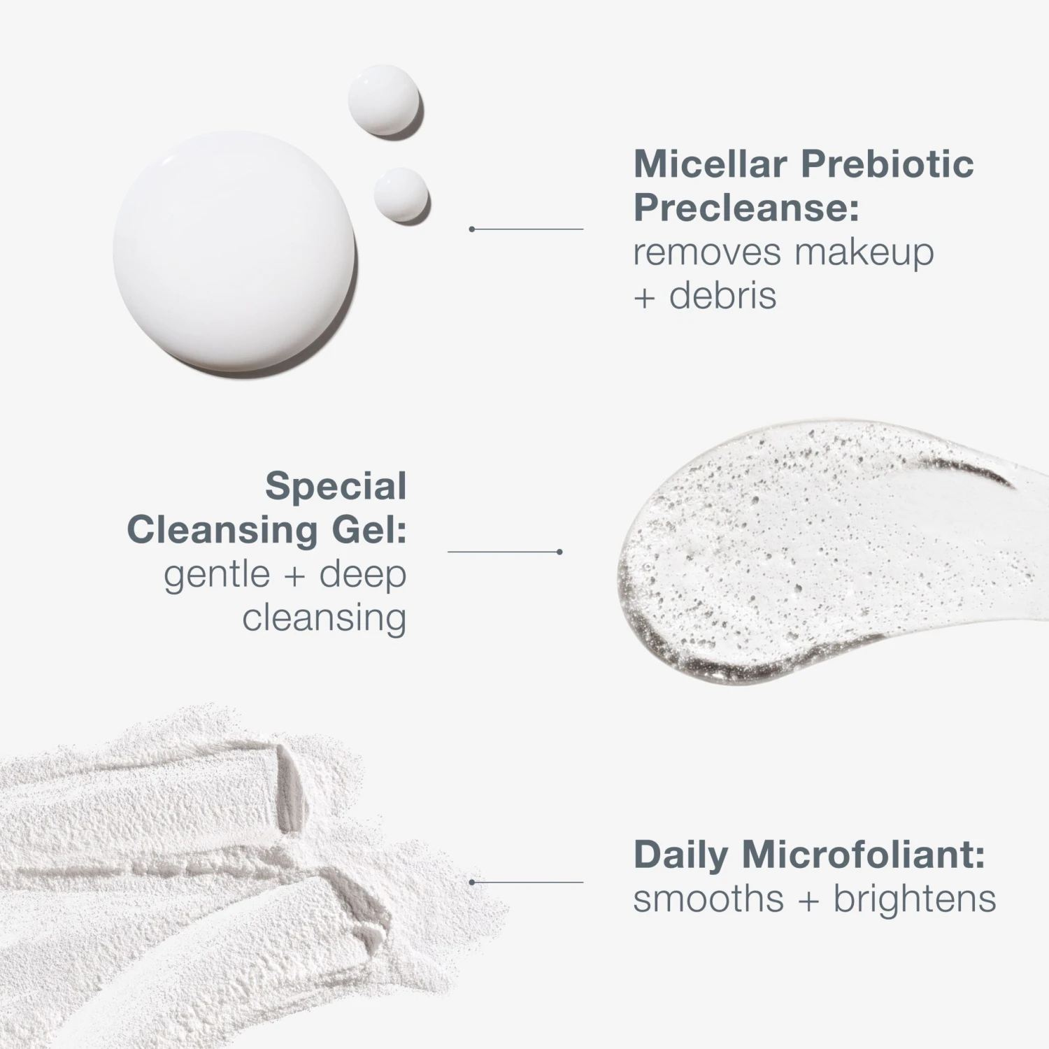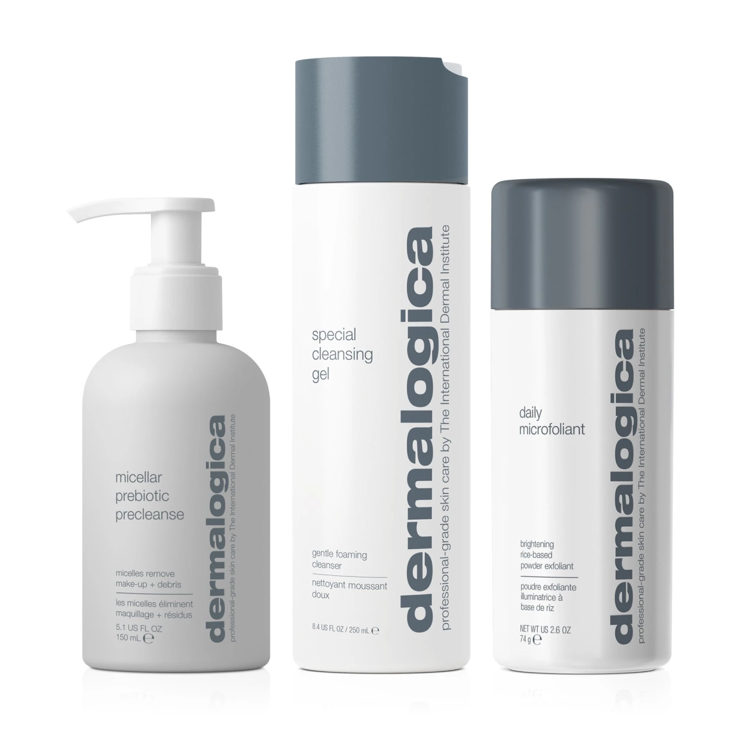 Includes: full retail sizes of Micellar Prebiotic Precleanse 150ml, Special Cleansing Gel 250ml, Daily Microfoliant 74g.