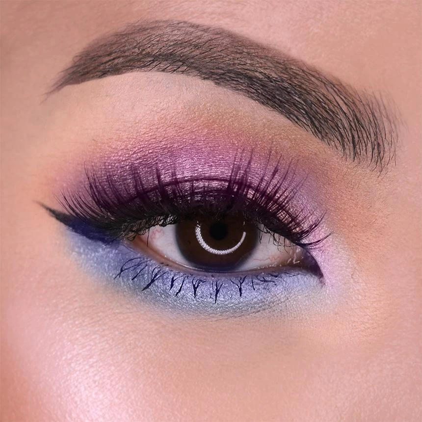 Pro Eyeshadow Palette #04 comes with 9 iridescent-inspired pressed powder shadows. Peachy-pink, pastel coral, midnight blue, pastel violet, and deep burgundy—these pops of colour make all the difference.