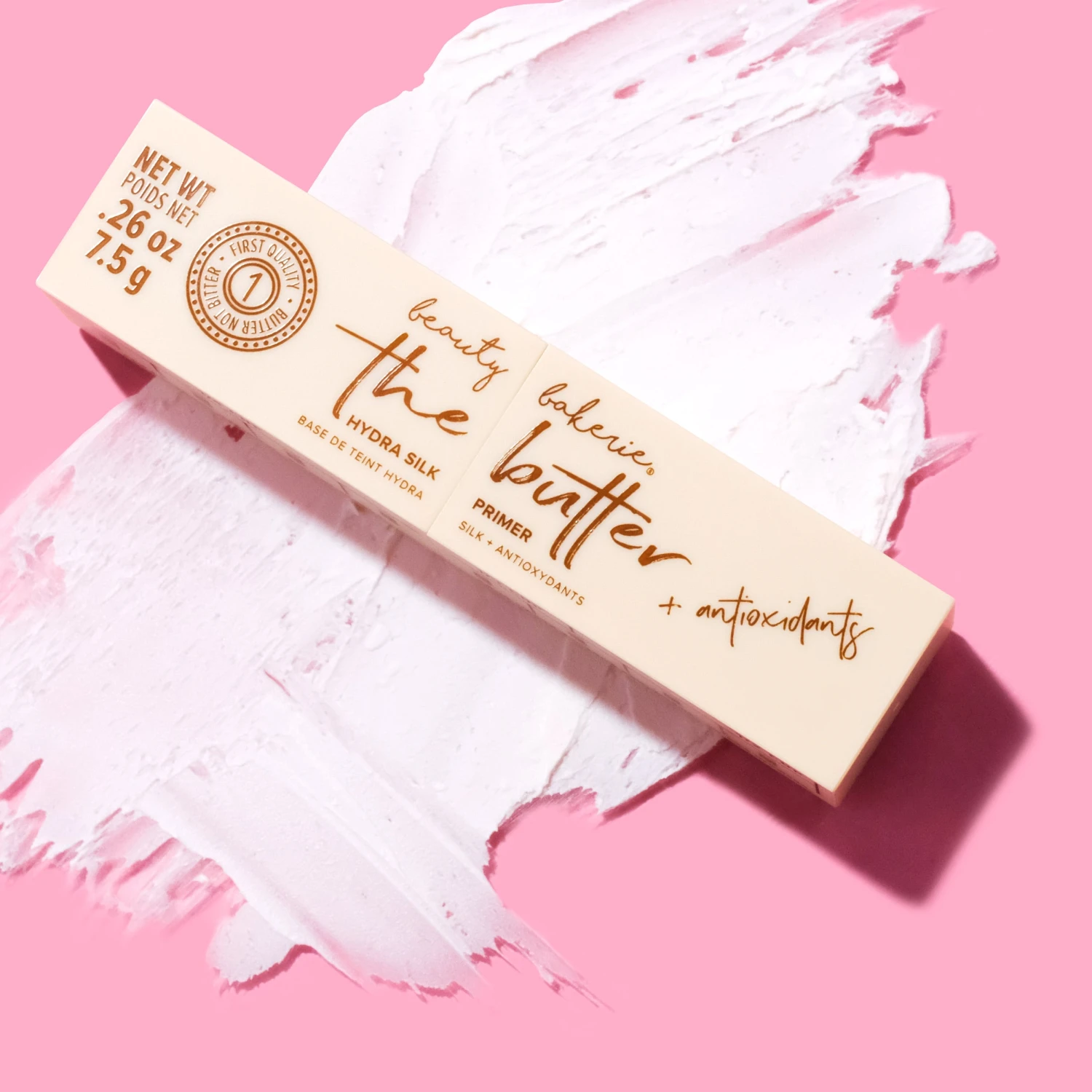 The Butter HydraSilk Primer is a lightweight, hydrating primer that provides your skin with a smooth canvas and extends the wear of your makeup. It applies just like warm, creamy butter and leaves your skin feeling like silk. This alone calls for a toast 😉